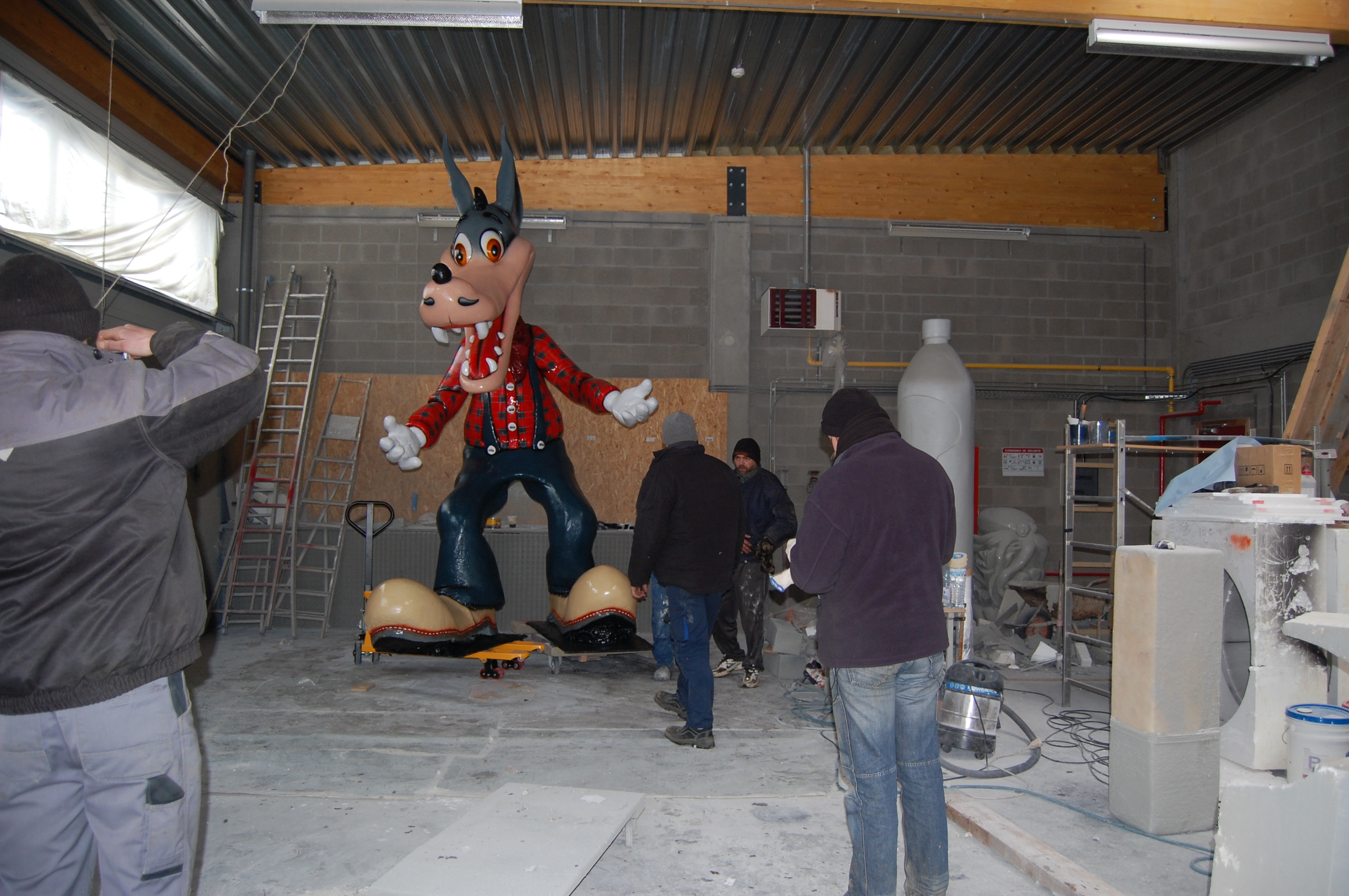 Blik op onze werkplaats gedurende de werkzaamheden van de mascotte van Leus.